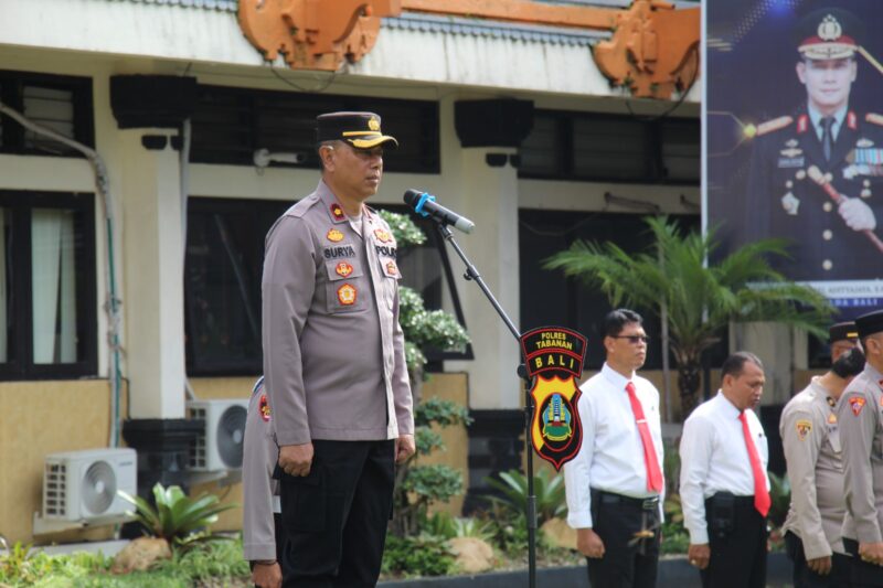 Tabanan. Polres Tabanan melaksanakan Apel Jam Pimpinan pada Senin, 1 Desember 2025, bertempat di Lapangan Tathya Dharaka Polres Tabanan. Kegiatan yang berlangsung sejak pukul 08.30 hingga 09.00 WITA ini dipimpin oleh Waka Polres Tabanan, Kompol I Gede Made Surya Atmaja Putra, S.Sos., M.H., dan dihadiri oleh seluruh Pejabat Utama, personel Polri, serta ASN Polres Tabanan. Apel diawali dengan pengucapan Tri Brata, Catur Prasetya, dan Panca Prasetya Korpri sebagai komitmen moral dalam melaksanakan tugas kepolisian.