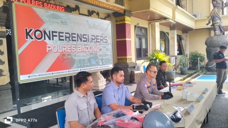 Badung – Kapolres Badung AKBP Joseph Edward,S.H.,S.I.K.,M.H didampingi Kasat Reskrim dan Kapolsek Kuta Utara memimpin prescom di Loby Mapolres,Sabtu 2/3/26