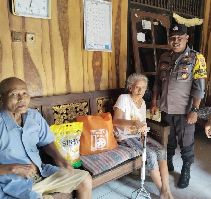 Denpasar | Sebagai bentuk kepedulian terhadap warga binaan yang membutuhkan perhatian dan bantuan sosial, Bhabinkamtibmas Kelurahan Kesiman Bripka I Wayan Artawa menyalurkan bantuan alat bantu jalan berupa tripot serta paket sembako kepada pasangan suami istri yang tengah menderita sakit stroke. Kegiatan sosial tersebut dilaksanakan pada Senin (06/04/2026) pagi, bertempat di Banjar Pebean, Jl. WR Supratman, Gang Gunung Kawi No. 9, Kelurahan Kesiman, Denpasar Timur.