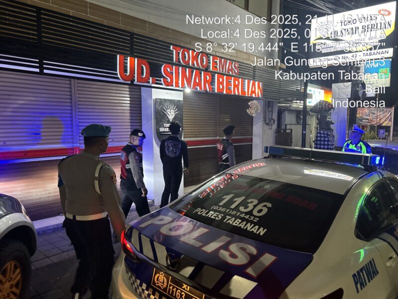 Tabanan. Polres Tabanan kembali menunjukkan komitmennya dalam menjaga keamanan wilayah melalui kegiatan Blue Light Patrol yang digelar pada Jumat dini hari, 5 Desember 2025, pukul 00.30 hingga 02.00 Wita. Patroli gabungan ini dilaksanakan di sejumlah titik rawan di wilayah hukum Polres Tabanan sebagai langkah preventif untuk mencegah terjadinya kejahatan 3C, yakni Curat, Curas, dan Curanmor.