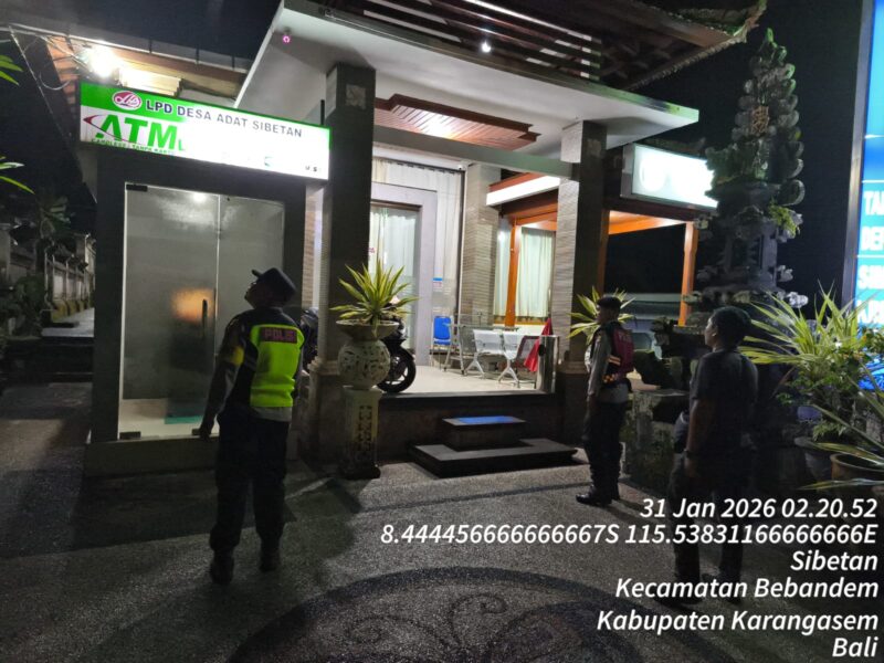 Pengamanan Obyek Vital & Pendidikan: Petugas melakukan pengecekan pada titik Barcode di LPD Desa Sibetan dan SMK N 1 Bebandem. Langkah preventif ini dilakukan untuk mencegah aksi pembobolan maupun pencurian di perkantoran dan institusi pendidikan pada jam-jam rawan.