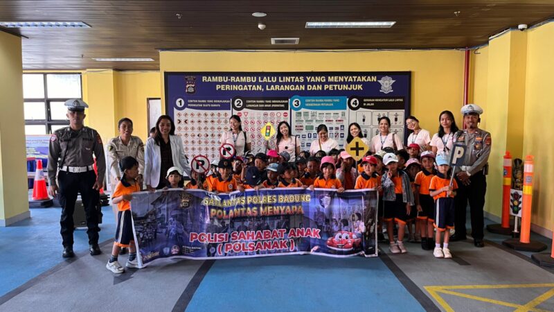 Mangupura – Sat Lantas Polres Badung menggelar kegiatan Polsanak (Polisi Sahabat Anak) di Ruang Praktik SIM, Jalan I Gusti Ngurah Rai Mengwi, Jumat (30/1/2026). Kegiatan ini diikuti oleh anak-anak TK Sila Kumara Yayasan Widia Sentana dan bertujuan untuk mengenalkan tugas kepolisian khususnya Polisi Lalu Lintas, sekaligus menanamkan budaya tertib berlalu lintas sejak usia dini.