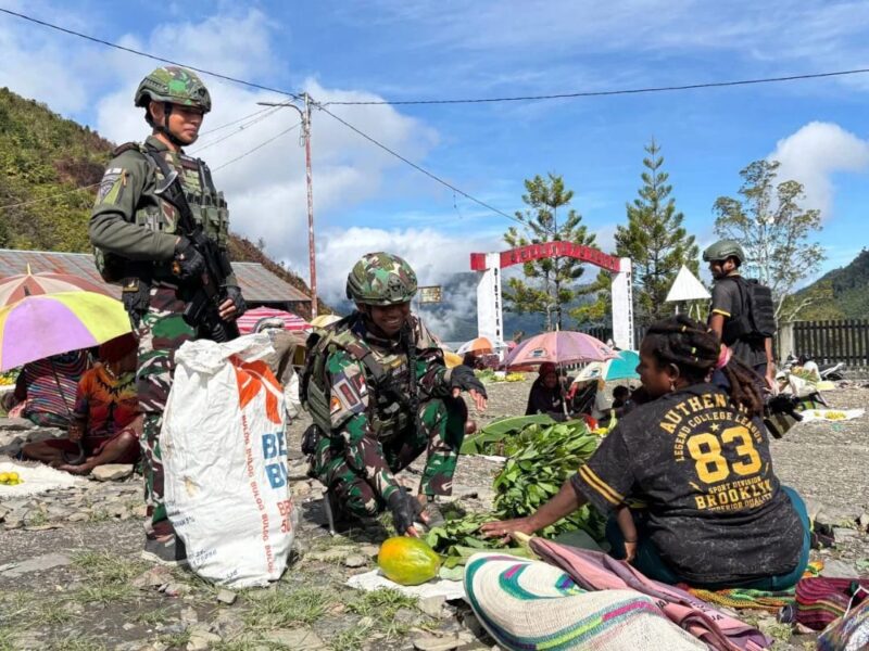 Senyum sederhana hadir di tengah hiruk pikuk Pasar Mulia, Distrik Mulia, Kabupaten Puncak Jaya, Papua, Selasa (27/01/26). Di antara tumpukan sayur-sayuran segar hasil bumi pegunungan, Prajurit Satgas Yonif 743/PSY melangkah dengan hati tulus, melaksanakan kegiatan Belanja Kasih sebagai wujud kepedulian sekaligus dukungan bagi masyarakat.