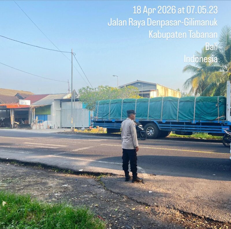 Tabanan- Sabtu 18/4/2026 Pukul 07.00 s/d 08.00 wita Guna menjaga keamanan dan kelancaran lalu lintas, keramaian aktivitas masyarakat di pagi hari, Personel Polsek Selbar AIPDA Putu Yuli Artika S.H Laksanakan Strong Point di Depan Pasar Suraberata antisipasi Gangguan Kamtibmas di pagi hari demi keselamatan dan kelancaran pengguna jalan Raya di Kecamatan Selemadeg barat, Kabupaten Tabanan.