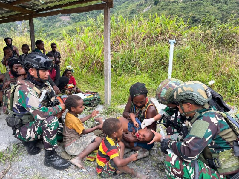Satgas Yonif 743/PSY tidak hanya memberikan bantuan secara langsung, tetapi juga memberikan pelayanan kesehatan serta menjalin komunikasi yang hangat dengan masyarakat.