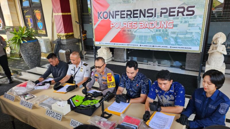 Badung – 2 WNA Asal Perancis dan seorang WNA asal Italia pembuat vidio pornografi hendak kabur dari Bali berhasil diamankan aparat gabungan Polres Badung dan Imigrasi yang digelar langsung dalam press release terkait pengungkapan tindak pidana informasi elektronik bermuatan pornografi yang viral di media sosial yang berlangsung di lobby Mapolres Badung pada Selasa (17/3/2026)