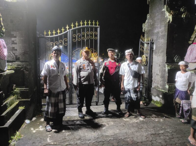 Kapolsek Mengwi Kompol Rai Darmayasa bersama personel Polsek Mengwi dan pecalang desa adat denkayi melakukan pengamanan di beberapa titik strategis, baik di area pura maupun di jalur keluar masuk lokasi kegiatan. Selain pengamanan terbuka dan tertutup, petugas juga melaksanakan pengaturan arus lalu lintas guna mencegah terjadinya kemacetan serta gangguan Kamtibmas.