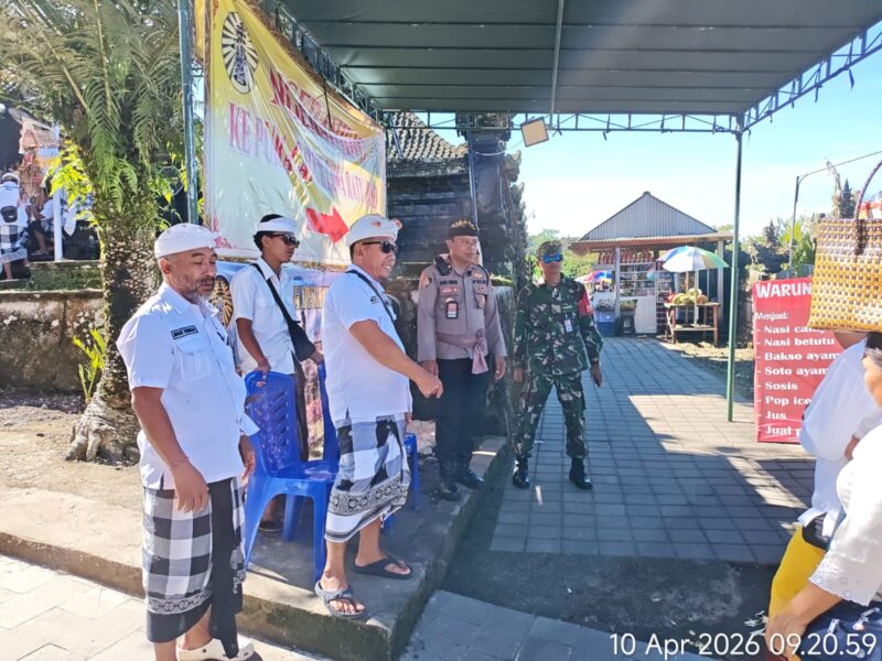 RENDANG – Kapolsek Rendang Kompol I Made Berata,SH,MH melaksanakan patroli sambangi warga masyarakat Pecalang Desa Adat Besakih dialogis kamtibmas serap informasi situasi wilayah karya IBTK Pura Besakih, minggu (12/4/2026)