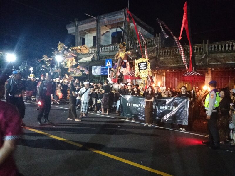 Tabanan – Polsek Selemadeg. Personel gabungan di bawah komando Kapolsek Selemadeg, Kompol I Made Subadi, S.H., sukses mengawal jalannya tradisi pengarakan 54 Ogoh-ogoh di wilayah hukum Polsek Selemadeg pada Rabu (18/3/2026) malam. Pengamanan ketat ini dilakukan guna memastikan rangkaian perayaan malam Pengerupukan di sepuluh Desa berjalan khidmat, aman dan tertib tanpa gangguan kamtibmas.