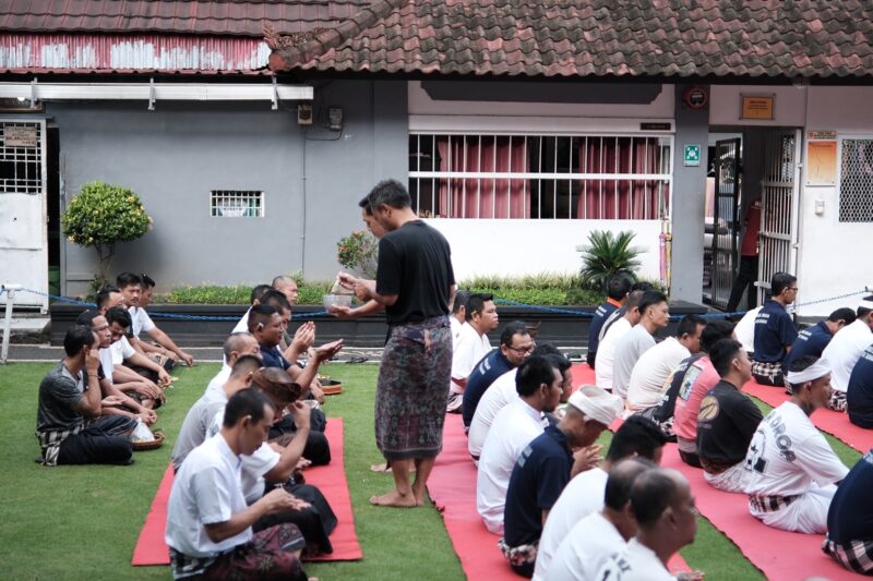 Tabanan – Bertepatan dengan Rahina Tilem Sasih Kawolu yang jatuh pada Soma Wage Wuku Prangbakat, Warga Binaan Lembaga Pemasyarakatan (Lapas) Kelas IIB Tabanan yang beragama Hindu melaksanakan persembahyangan bersama di Pura Swagina sebagai bagian dari penguatan pembinaan spiritual di lingkungan Lapas, Senin (16/02).