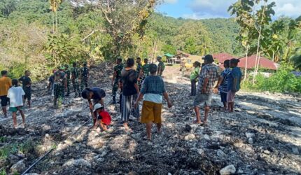 Uncategorized Momen Haru di Lokasi TMMD Ende, TNI dan Warga Makan Siang Bersama Penuh Keakraban