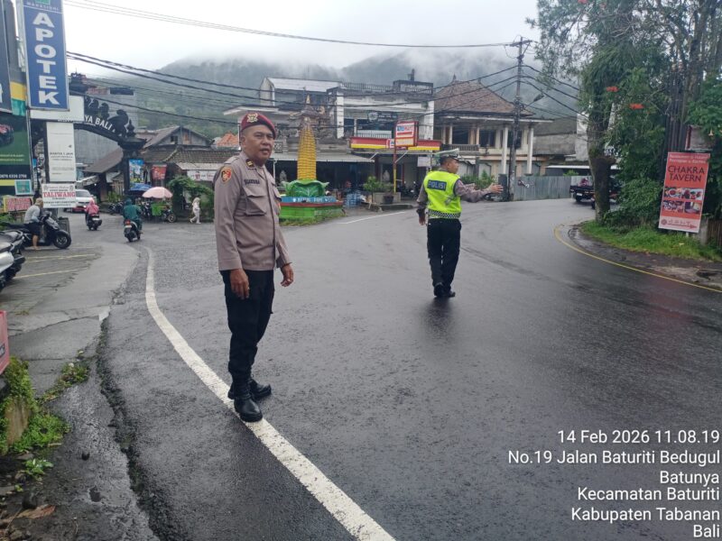 Tabanan – Polsek, Minggu 15 Februari 2026, Baturiti melaksanakan kegiatan patroli sambang pada Sabtu, 14 Februari 2026, mulai pukul 12.00 Wita hingga 16.00 Wita dengan fokus utama pengamanan jalur wisata dan obyek wisata di kawasan Bedugul. Kegiatan yang dipimpin oleh Pawas IPTU I Made Suartama bersama empat personel Polri ini difokuskan pada pengawasan arus lalu lintas serta aktivitas pengunjung di jalur utama Denpasar–Singaraja guna memastikan keamanan dan kelancaran mobilitas masyarakat maupun wisatawan.