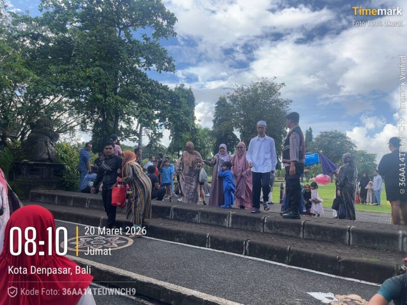 Denpasar. Dalam rangka pelaksanaan Operasi Ketupat Agung 2026, jajaran Polresta Denpasar melaksanakan pengamanan kegiatan ibadah Sholat Idul Fitri 1447 H yang dipusatkan di Lapangan Renon, Denpasar, pada Jumat (20/3/2026).
