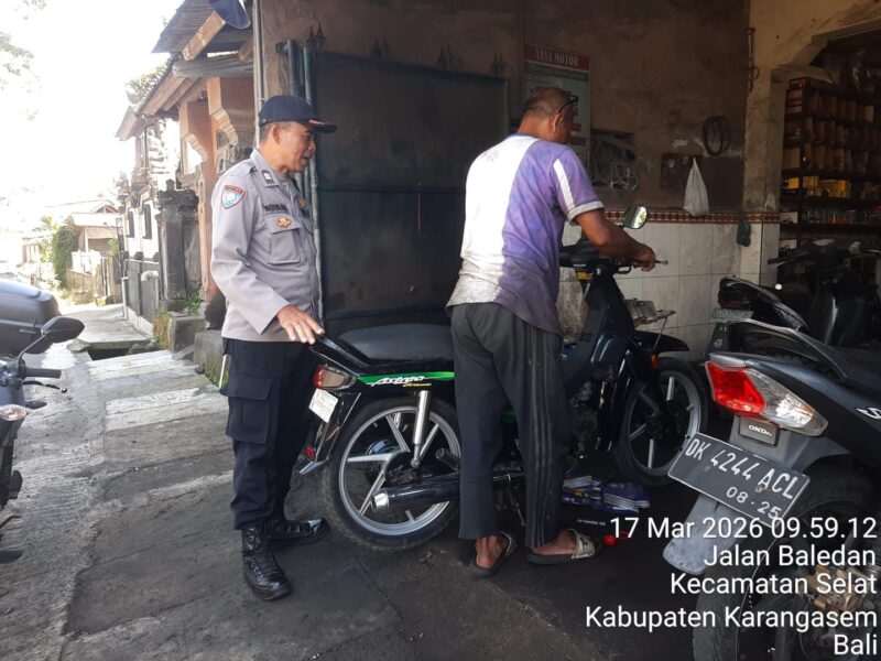 Karangasem | Pengamanan kegiatan masyarakat dalam rangka upacara Dewa Yadnya Usaba Dodol di Desa Adat Duda, Kecamatan Selat, berlangsung dengan aman dan tertib pada Selasa (17/3/2026). Kegiatan persembahyangan yang dipusatkan di Pura Dalem Desa Adat Duda mulai dilaksanakan sejak pukul 06.00 WITA.