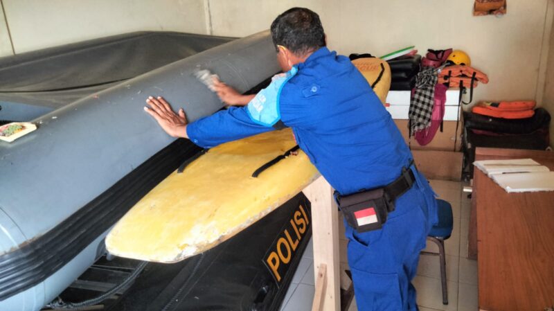 Gianyar – Dalam rangka menjaga kesiapsiagaan sarana dan prasarana operasional, personel Satuan Polairud Polres Gianyar melaksanakan kegiatan pemeliharaan dan perawatan (HARWAT) inventaris di Pos Pantau Terpadu Pantai Masceti, Kamis (23/4/2026) pagi.