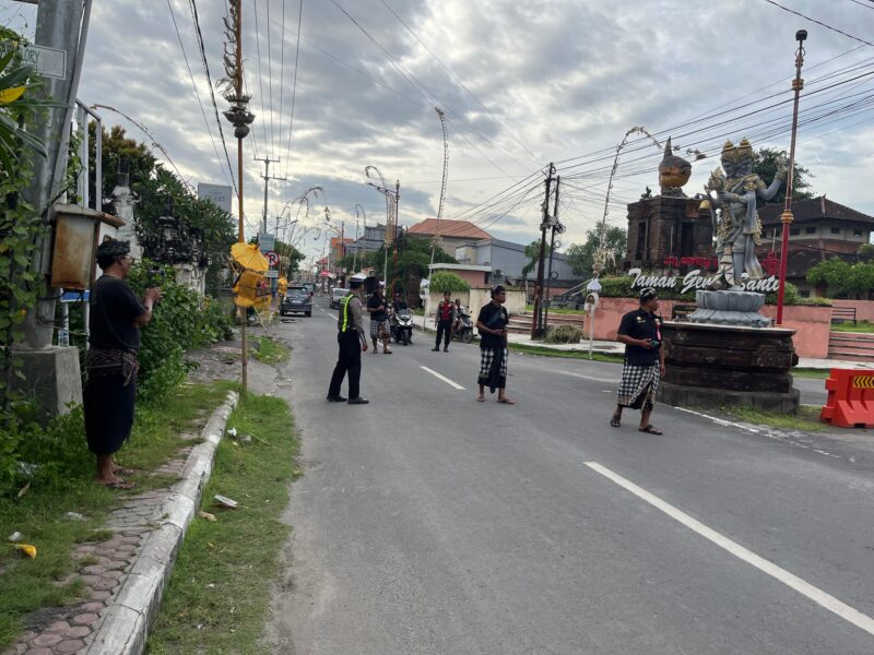 Dalam pelaksanaannya, personel Polri bersinergi dengan pecalang Desa Adat setempat untuk memastikan kegiatan berjalan tertib dan lancar.