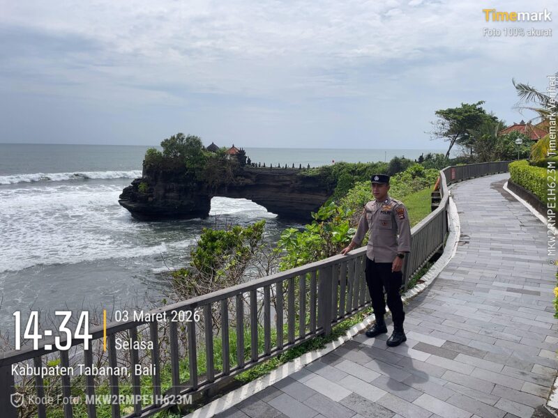 Hari Selasa, 3-3-2026 pukul 13.30 s/d 19.00 wita, personil Polsubsektor Tanah Lot Brigadir I Komang Mardimas dan Brigadir I Wayan Kertayasa di backup personil opsnal Polsek Kediri bersinergi dengan satuan pengamanan kawasan DTW Tanah Lot dan pecalang melaksanakan patroli di kawasan baik lokasi parkir, Artshop dan pantai.