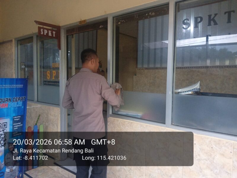 Karangasem-Guna menjaga kenyamanan dalam melaksanakan tugas sehari-hari Personil Polsek Rendang Polres Karangasem melaksanakan kebersihan di dalam ruangan Polsek Rendang, jumat 20/3/2026