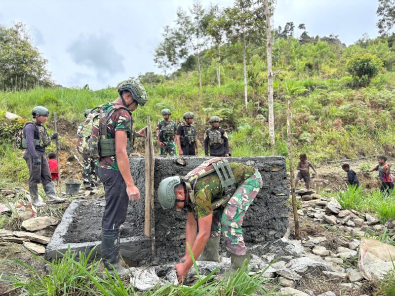 Harapan akan kehidupan yang lebih sehat kini mengalir hingga ke Kampung Kalome, Distrik Mulia, Kabupaten Puncak Jaya. Satgas Yonif 743/PSY Pos Talilime menunjukkan kepedulian nyata dengan membangun bak penampungan air bersih bagi masyarakat setempat, Rabu (21/01/2026).