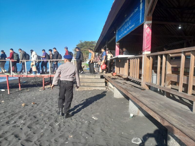 Klungkung – Satuan Polisi Perairan dan Udara (Polairud) Polres Klungkung melaksanakan kegiatan pengamanan di Pelabuhan Lokal Kampung Kusamba, Kecamatan Dawan, Kabupaten Klungkung, (19/4).