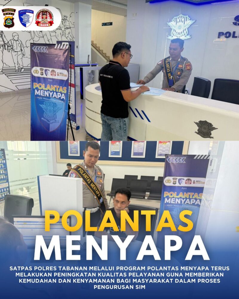 Kanit Regident Satlantas Polres Tabanan Iptu Nanik seijin Kapolres Tabanan AKBP I PUTU BAYU PATI, S.I.K., M.H., Satpas Polres Tabanan melalui program Polantas Menyapa terus melakukan peningkatan kualitas pelayanan guna memberikan kemudahan dan kenyamanan bagi masyarakat dalam proses pengurusan SIM. Setiap tahap pelayanan dilaksanakan dengan prinsip ketelitian, transparansi, serta sikap petugas yang ramah dan humanis.