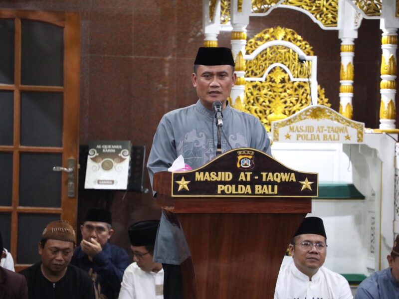 Denpasar – Polda Bali menggelar peringatan Isra Mikraj Nabi Muhammad SAW 1447 Hijriah/2026 M yang berlangsung khidmat di Masjid At-Taqwa Polda Bali. Kegiatan keagamaan ini dihadiri oleh Pejabat Utama Polda Bali serta seluruh jemaah yang melaksanakan ibadah dalam rangka perayaan Isra Mikraj. Jumat, (16/1/2026).