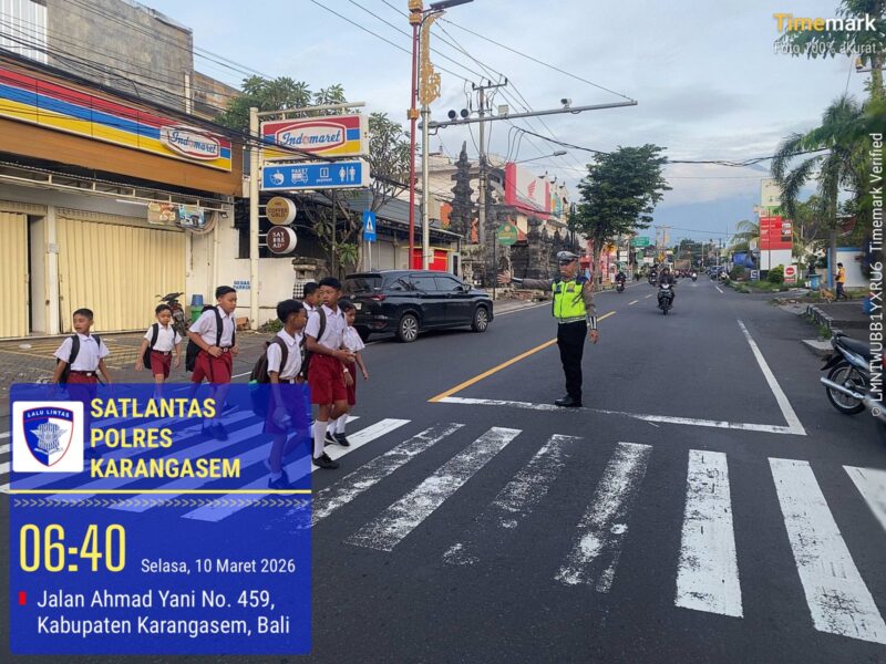 “Arus lalulintas siang ini sangat padat dan ramai maka kegiatan penyebrangan anak sekolah di pintu masuk depan SDN 4 Subagan kami laksanakan setiap murid pulang sekolah demi menjaga keselamatan semua anak-anak serta arus lalulintas pun tetap lancar dan kondusif, “ucap Aipda Km Sukanadi, Selasa, 10 Maret 2026 , pukul 06.30 wita.