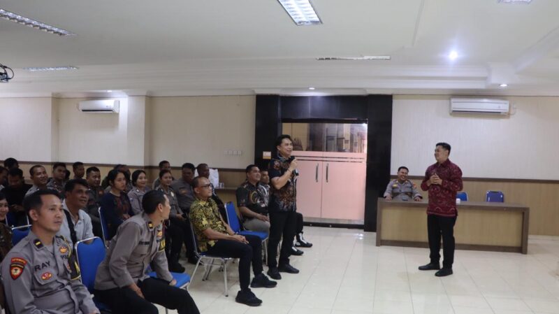 Pelatihan dilanjutkan dengan penyampaian materi oleh I Gede Bhisma. Materi disampaikan dengan metode interaktif dan disesuaikan dengan kebutuhan tugas kepolisian, sehingga mudah dipahami dan diterapkan langsung di lapangan. Prinsip utama komunikasi bagi personel adalah percaya diri, ramah, dan tetap tegas dan penerapan 4 kata sakti dalam etika pelayanan yaitu Sorry, Excuse me, Please, dan Thank you.