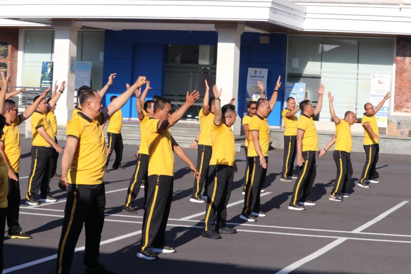 Rangkaian kegiatan olahraga pagi tersebut diawali dengan jalan santai menyusuri rute di sekitar area Mapolres guna pemanasan, yang kemudian dilanjutkan dengan sesi senam bersama. Seluruh personel, mulai dari jajaran pejabat utama hingga staf, nampak antusias mengikuti gerakan instruktur senam di lapangan hijau kebanggaan Polres Karangasem tersebut.