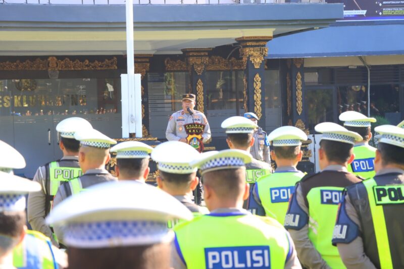 Apel diikuti oleh para pejabat utama (PJU) Polres Klungkung, perwira, bintara, ASN, serta seluruh personel yang terlibat dalam pengamanan Kemala Run 2026.