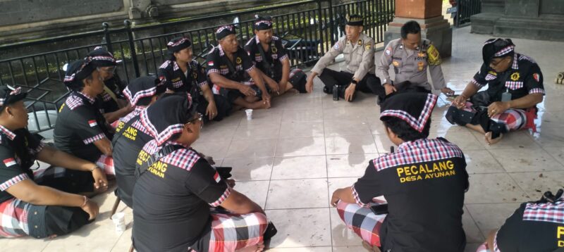 Kegiatan tersebut dihadiri oleh Kanit Binmas Polsek Abiansemal IPTU I Gusti Made Widana yang mewakili Kapolsek Abiansemal, didampingi Bhabinkamtibmas Desa Ayunan Aiptu I Putu Suarnita, serta diikuti oleh Pecalang Desa Adat Ayunan.