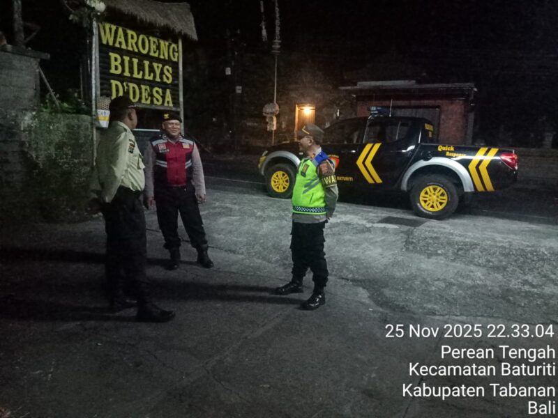 Polres Tabanan – Polsek Baturiti melaksanakan kegiatan Patroli Jam-Jam Rawan pada malam hari sebagai langkah preventif untuk mencegah terjadinya tindak pidana pencurian dengan pemberatan (Curat), pencurian dengan kekerasan (Curas), dan pencurian kendaraan bermotor (Curanmor) di wilayah hukum Polsek Baturiti. Kegiatan patroli ini dilaksanakan pada hari Selasa, 25 November 2025, mulai pukul 21.00 Wita hingga pukul 00.00 Wita guna memberikan rasa aman dan nyaman kepada masyarakat.