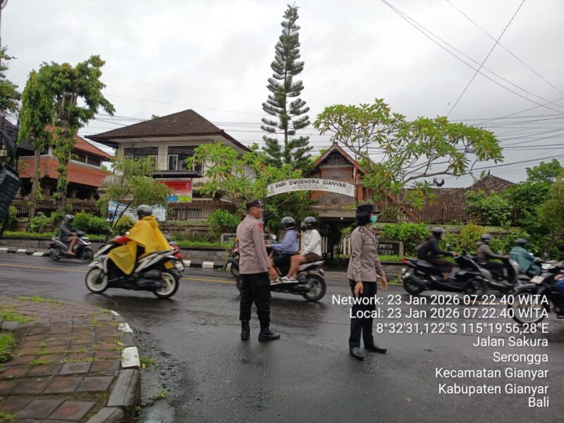 GIANYAR – Personel Polsek Gianyar melaksanakan kegiatan Police Hazard (PH) Pagi pada Jumat (23/1/2026) sejak pukul 06.30 WITA. Kegiatan ini difokuskan pada pengaturan arus lalu lintas dan membantu penyeberangan masyarakat, khususnya anak-anak sekolah, di sejumlah titik rawan kepadatan.