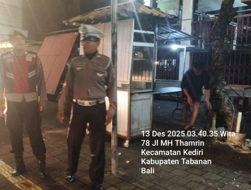 Polsek Kediri Polres Tabanan melaksanakan ‘Patroli Barcode’ di seputaran wilayah Kediri Sabtu (13/12/2025 ) pukul 01.00 s/d 04.00 wita Dalam menciptakan situasi Kamtibmas yang aman dan kondusif.