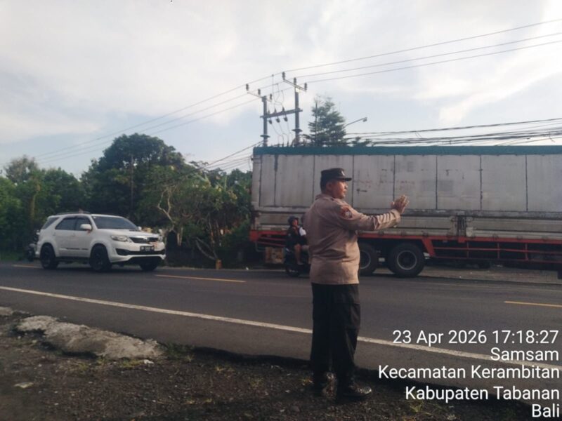 Tabanan-Polsek Kerambitan, Jumat 24 April 2026; Anggota Polsek Kerambitan laksanakan kegiatan Strong Point Khuss Radio Global Pengaturan Lalu Lintas di Jalur Denpasar – Gilimanuk tepatnya di Pos Radio Global yang termasuk Daerah Hukum Polsek Kerambitan.