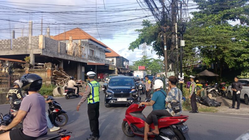 Kuta Utara – Guna mengantisipasi kepadatan arus lalu lintas pada sore hari, Personel Polsek Kuta mulai dari Lalu Lintas, Samapta, Bhabinkamtibmas dan Staf turun langsung ke jalan untuk melakukan pengaturan lalin, Jumat (10/4/2026) sore mulai pukul 16.00 Wita.