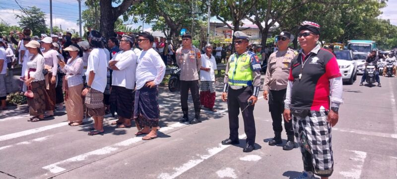 “Pengaturan lalu lintas kami lakukan bersama personel di lapangan dan pecalang desa adat, sehingga aktivitas masyarakat tetap terlayani tanpa mengganggu jalannya upacara,” tambahnya.