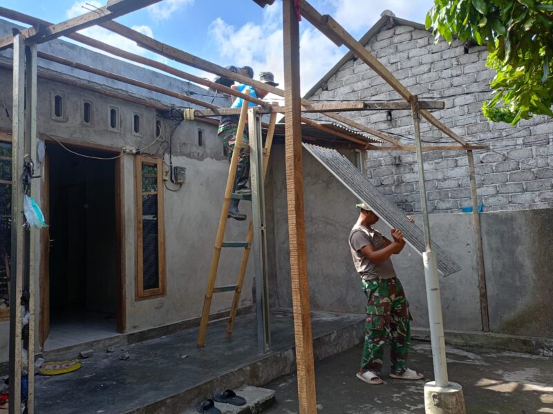 Adapun pengerjaan yang dilakukan meliputi penggantian atap rumah yang sudah tidak layak, peninggian tembok, pembuatan kamar, serta pekerjaan plester dan pengecatan. Seluruh proses ini dikerjakan secara gotong royong oleh personel Satgas TMMD bersama masyarakat setempat.