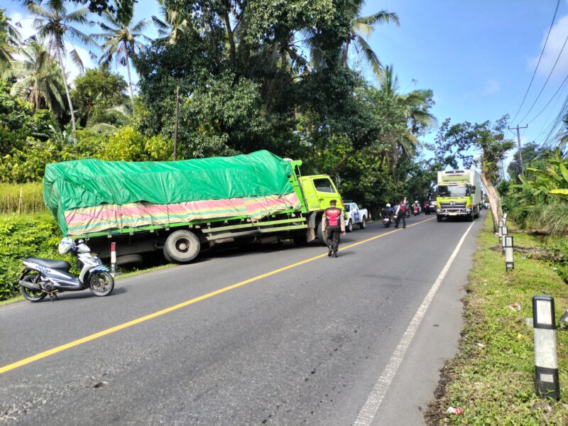 Tabanan – Personel Polsek Selemadeg bergerak cepat merespons insiden kecelakaan tunggal (Out of Control) yang menimpa truk Hino bernopol L 8040 UDC di Tanjakan Singin pada Kamis (12/3/2026) pukul 08.30 WITA. Dipimpin Pawas Aiptu A.A. Agung Suarayudha bersama enam personel langsung diterjunkan ke lokasi untuk mengamankan arus lalu lintas setelah truk bermuatan karton yang dikemudikan Hendrik tersebut terperosok ke parit akibat gagal menanjak.