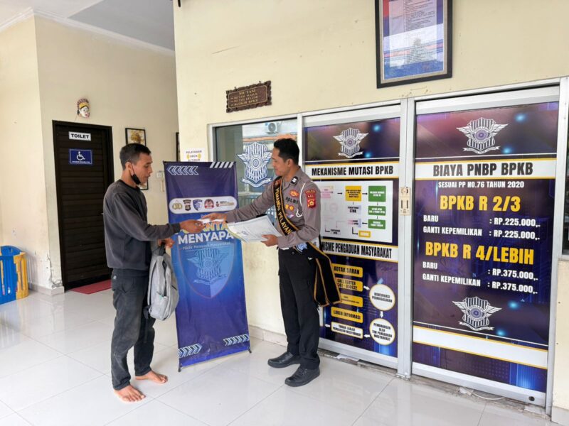 Tabanan – Guna memberikan pelayanan yang humanis tepat ,cepat dan transparasi Polantas Menyapa Polres Tabanan berkomitmen memberikan pelayanan kepada masyarakat dalam proses penerbitan BPKB