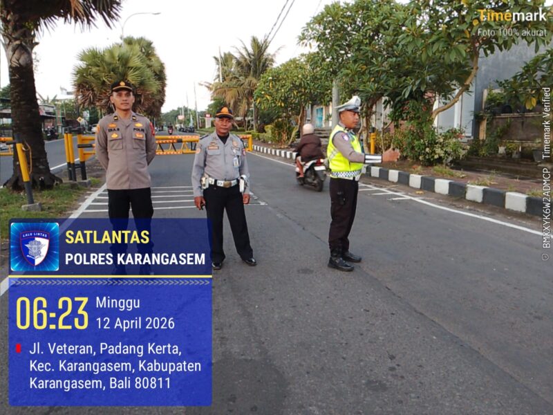Karangasem – Satuan Lalu Lintas Polres Karangasem melaksanakan kegiatan rutin pengamanan dan pengaturan lalu lintas di jalur Car Free Day Jalan Veteran barat dan timur, Pada hari Minggu, 12 April 2026 pagi.