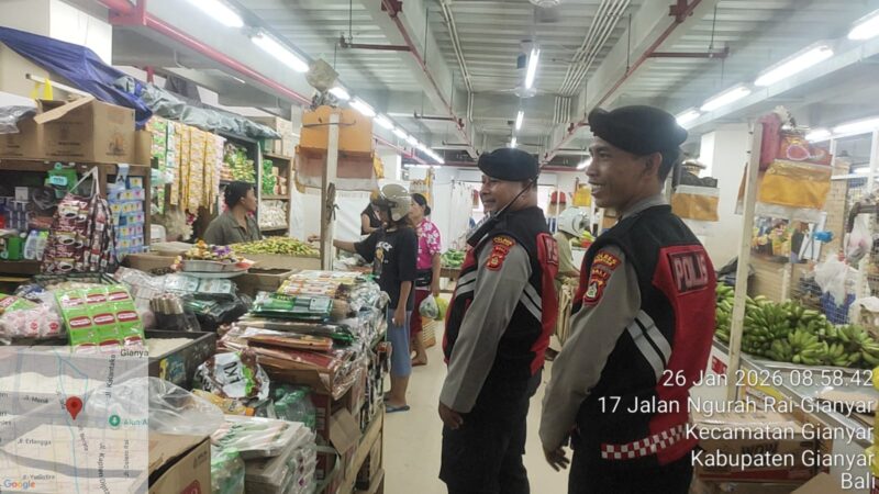 GIANYAR – Untuk mencegah terjadinya tindak kriminalitas dan memberikan rasa aman kepada masyarakat, Satuan Samapta Polres Gianyar melaksanakan patroli rutin di wilayah hukum Polres Gianyar dengan menyasar Pasar Rakyat Gianyar, Senin (26/1/2026) pagi.