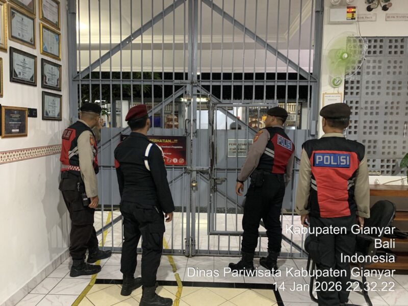 Gianyar – Dalam rangka menjaga stabilitas keamanan dan ketertiban masyarakat (kamtibmas) di wilayah hukumnya, Satuan Samapta Polres Gianyar melaksanakan patroli malam dengan menyambangi Rumah Tahanan Negara (Rutan) Kelas II.B Gianyar, Rabu (14/1/2026) malam.