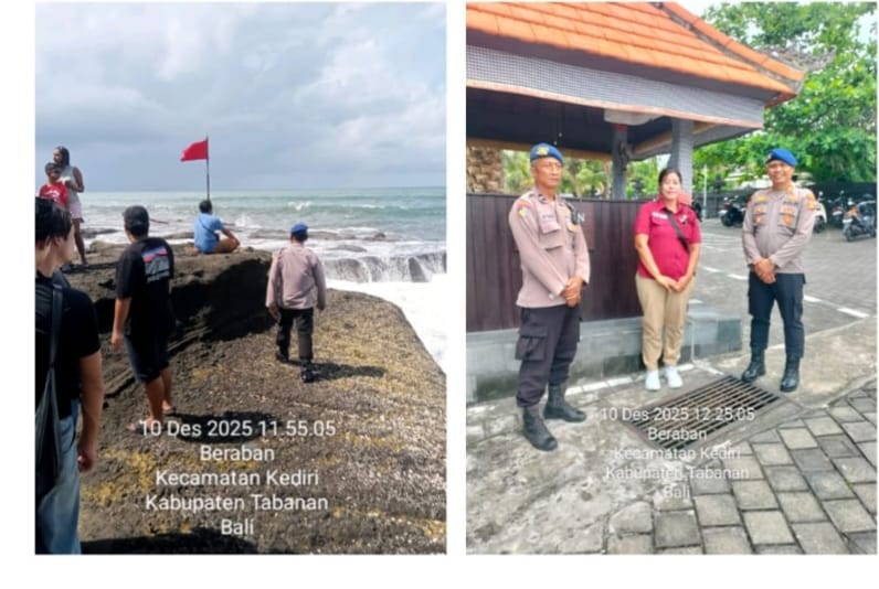 Tabanan. Pada Rabu, 10 Desember 2025 pukul 10.00 Wita, personel Satpolairud Polres Tabanan melaksanakan patroli pesisir dan sambang wisata di kawasan Pantai Kedungu. Kegiatan ini dipimpin oleh Aipda I Nyoman Tana bersama Aipda Nyoman Subagiarta sebagai bentuk kewaspadaan dan pelayanan kepolisian terhadap wisatawan lokal maupun mancanegara yang beraktivitas di sepanjang pesisir.