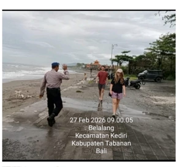 Tabanan. Personel Satpolairud Polres Tabanan melaksanakan patroli pesisir dan sambang pantai di kawasan Pantai Kedungu, Jumat (27/2/2026) pukul 10.00 Wita. Kegiatan patroli jalan kaki ini dilakukan sebagai upaya pemantauan aktivitas masyarakat serta wisatawan lokal dan mancanegara yang berkunjung ke kawasan pesisir.