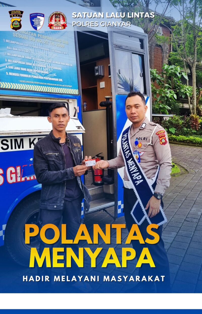 Gianyar – Wujud mendekatkan kepada masyarakat melalui polantas menyapa Polres Gianyar memberikan pelayanan SIM ke beberapa titik