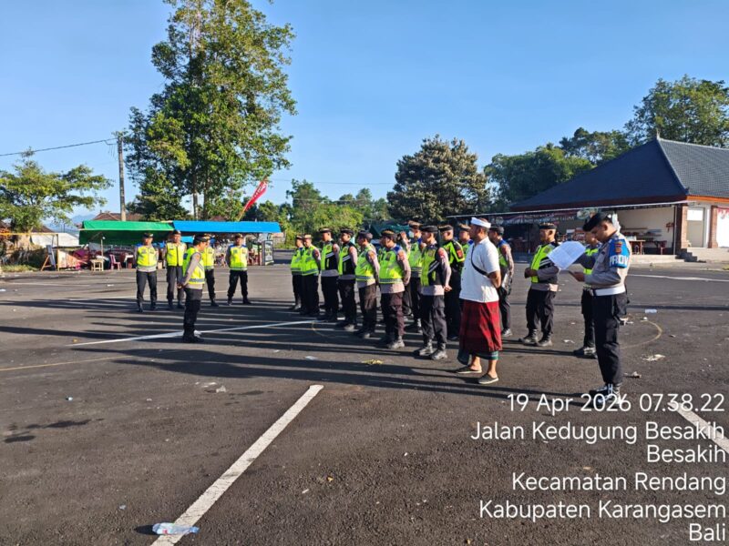 Sipropam Polres Karangasem melaksanakan pengawasan sekaligus absensi kehadiran personel yang bertugas dalam pengamanan kegiatan IBTK di wilayah hukum Polres Karangasem. (19/04/2026)