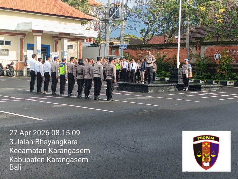 Karangasem – Seksi Profesi dan Pengamanan (Sipropam) Polres Karangasem melaksanakan kegiatan pengamanan dan pengawasan dalam apel jam pimpinan yang digelar di halaman Mapolres Karangasem, Senin (27/4).