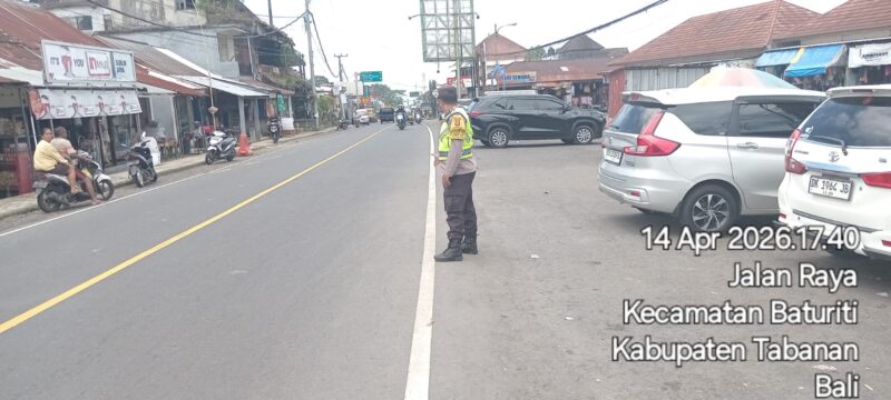 Tabanan – Polsek Baturiti melaksanakan kegiatan strong point pagi pada Rabu, 15 April 2026 di depan Pasar Baturiti sebagai bentuk pelayanan kepada masyarakat serta untuk menjaga kelancaran arus lalu lintas pada jam aktivitas pagi hari.