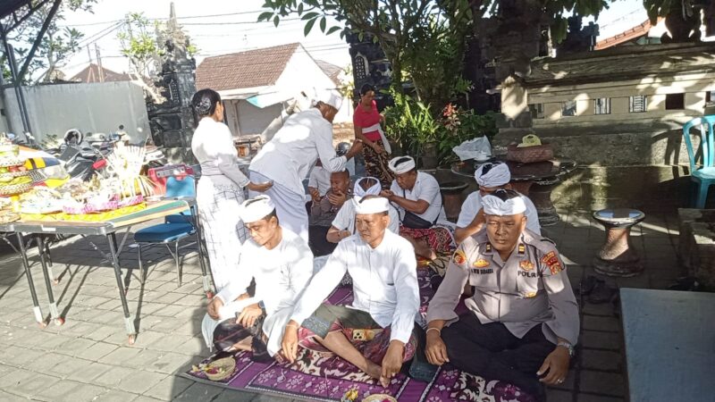 Kapolsek Kediri Kompol Putu Budiawan bersama personil yang beragama Hindu yang dipimpin langsung Jro Mangku I Wayan Sukarma melaksanakan persembahyangan bersama dalam rangka perayaan hari Tumpek Landep hari Sabtu, 18-4-2026 pukul 07.00 Wita.